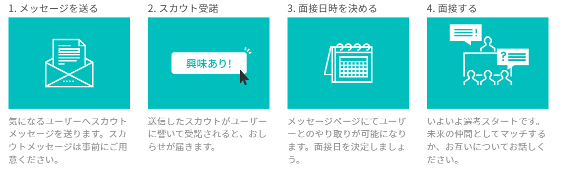 スカウト送信方法や選考管理については以下ヘルプページをご参照ください。