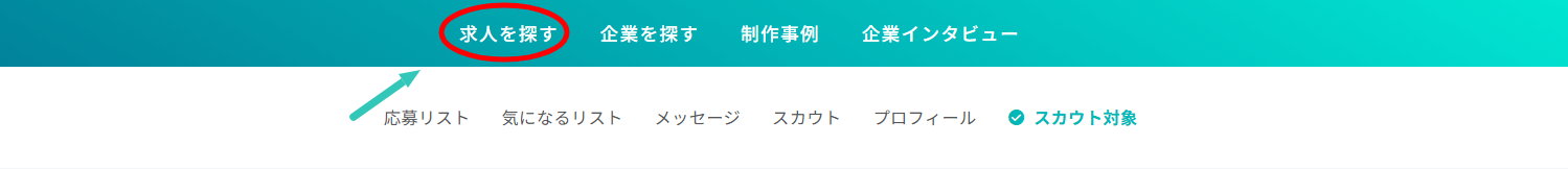 ログイン中のページ上部にある「求人を探す」にカーソルを動かし、表示されたキーワードを選択して検索することもできます。