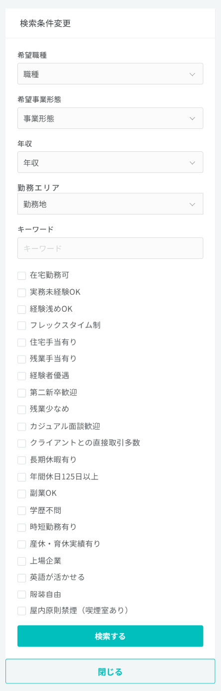 複数条件を選択した場合は、すべてに合致した求人が結果に反映されます。絞込みすぎにはご注意ください。