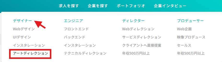 例)デザイナーの「アートディレクション」を選択した場合