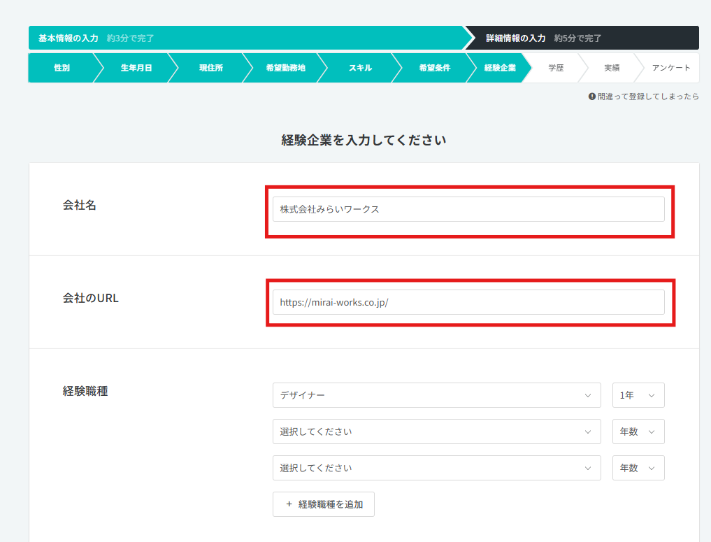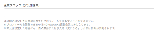 ・会員登録の際に、MOREWORKS掲載企業の「会社名」と「会社のURL」を「経験企業」として登録すると、自動で「企業ブロック(非公開企業)」に反映されます。