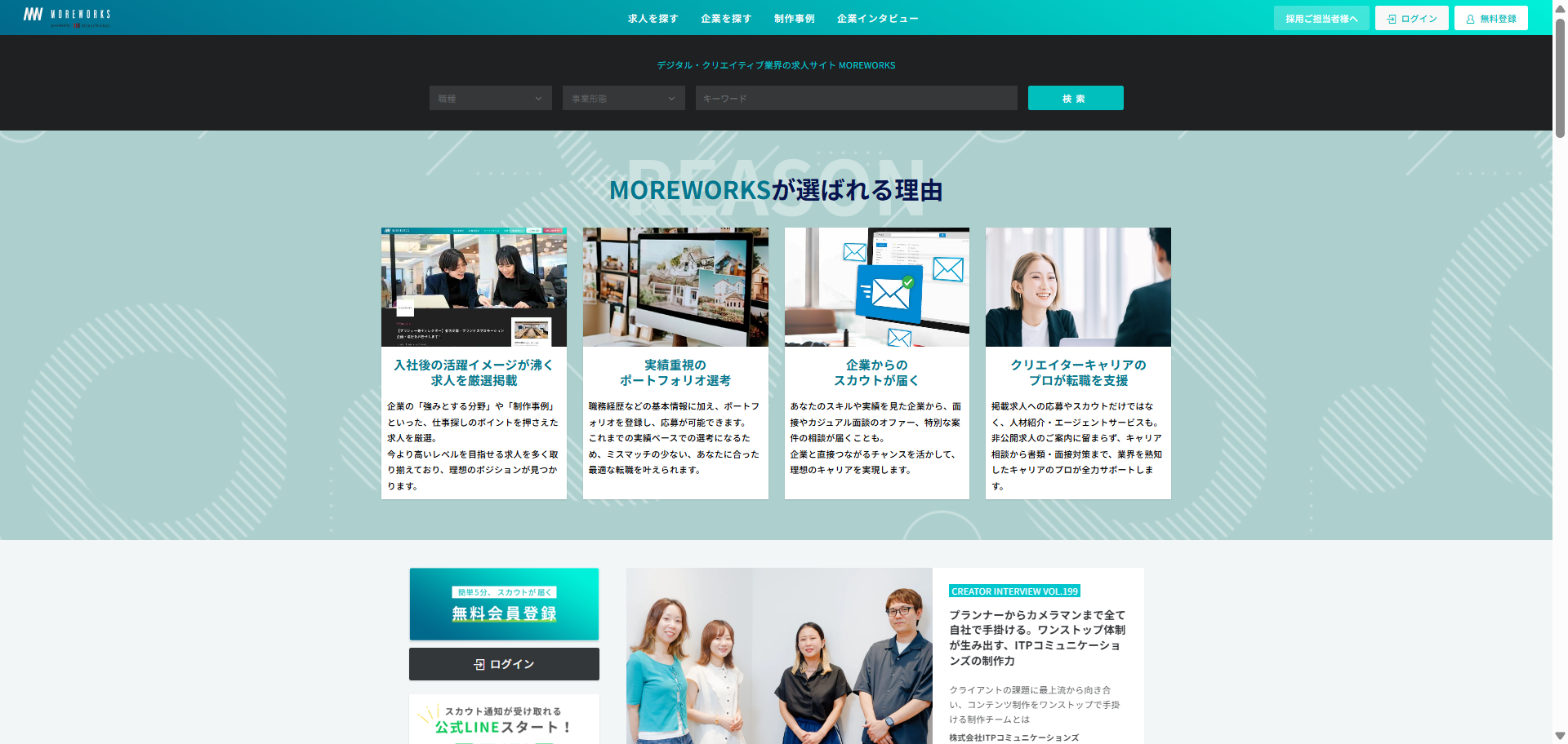 MOREWORKSは2009年にスタートした、デジタル・クリエイティブ業界の求人サイトです。「デザイナー」「エンジニア」「ディレクター」「プロデューサー・マーケター」の領域にフォーカスし、クリエイターならではのニーズに応える求人情報を提供しています。